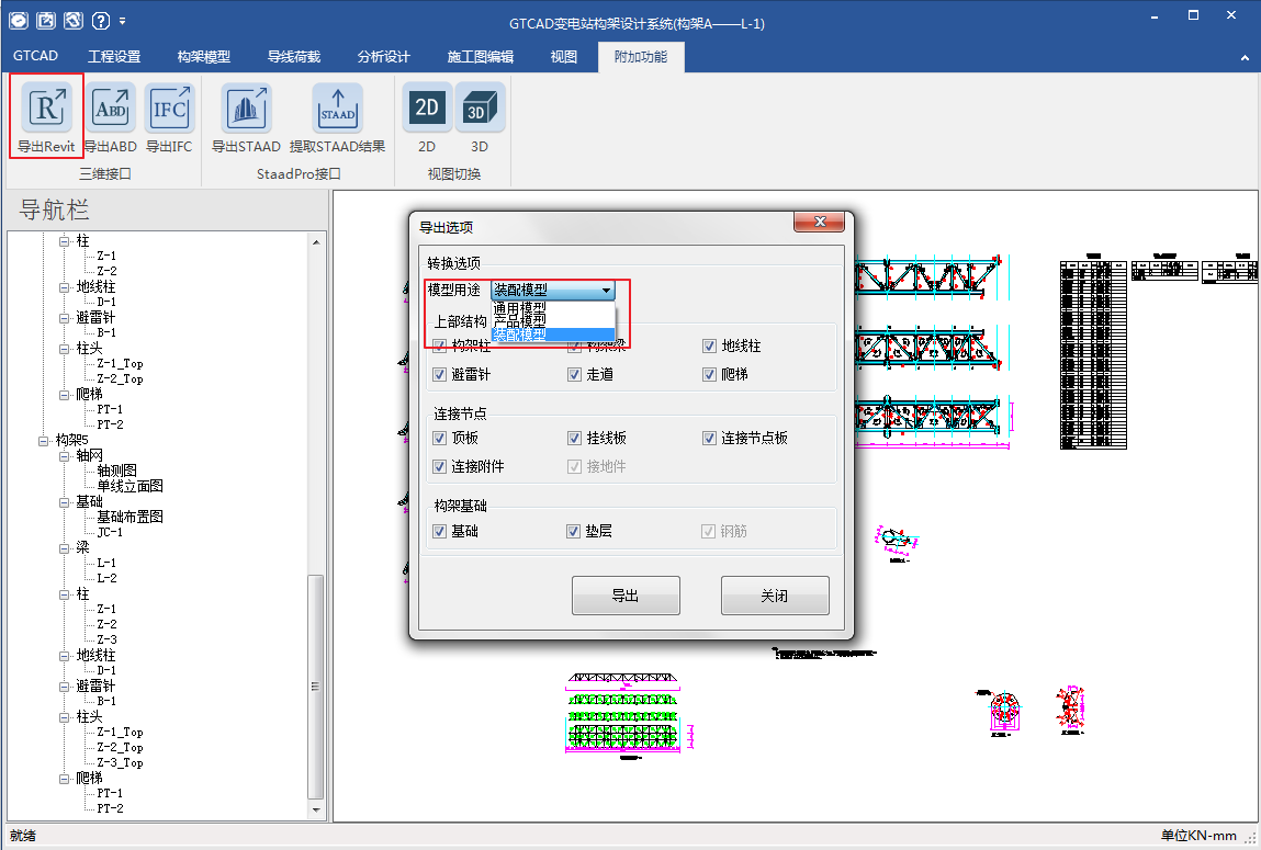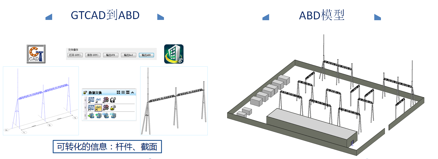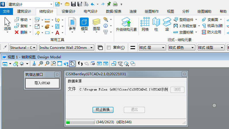 增加三維模型轉(zhuǎn)換接口模塊,可以將GTCAD建立的模型轉(zhuǎn)出到Bentley(ABD)模型(包含模型文件*.dat和截面庫(kù)文件*.xml),