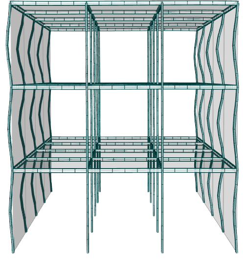 在考慮大位移效應的計算模型中,程序可以通過連接屬性中的P-Delta參數(shù)控制連接單元的局部軸旋轉(zhuǎn)。該功能適用于幾何非線性選項為“P-Delta和大位移”的非線性靜力分析、非線性直接積分法的時程分析以及階段施工分析。