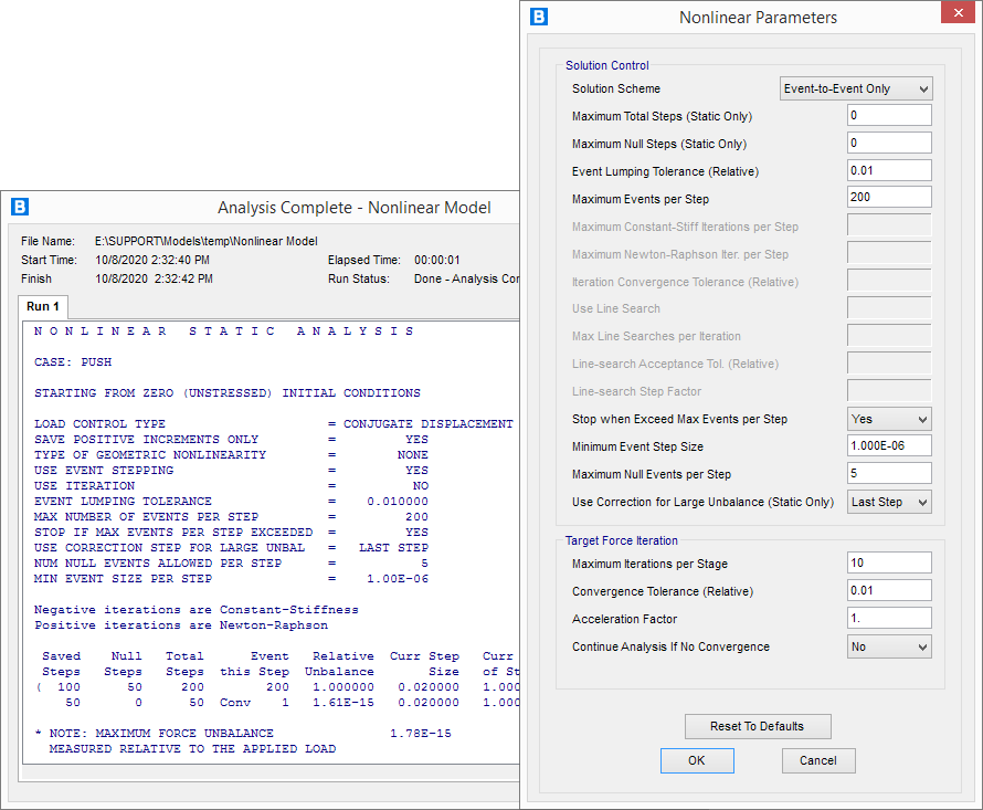- 增強了軟件的非線性分析功能,對非線性靜態(tài)分析增加了一個純事件到事件選項。