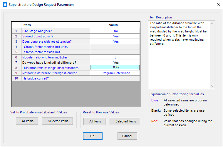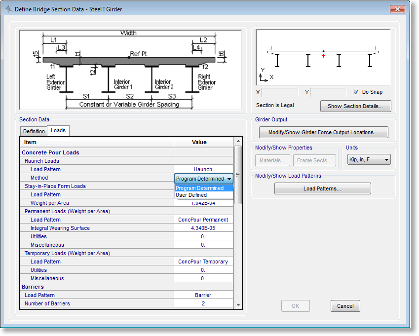 - 對于預制混凝土 I 型梁和混凝土 T 梁,用戶可以定義橋梁橫隔板的高度。