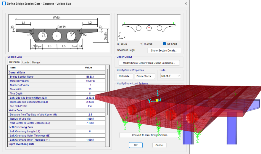 - 通過Bridge建模器可在橋墩底部定義詳細的
