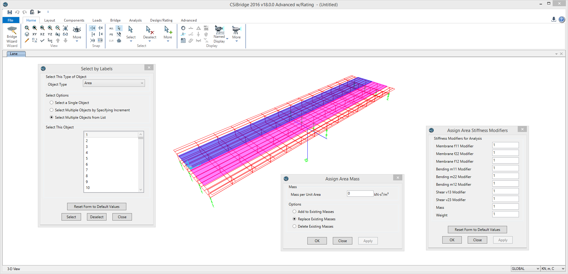 - 橋梁上部結(jié)構(gòu)橋面板荷載提供了方便的建模方法,用來為護欄、中央護欄、人行道、梁腋、施工荷載、鋪裝層建模。
