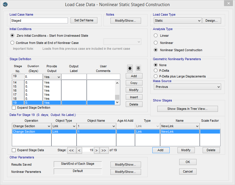 - 在分階段施工分析中,增加了指定混凝土柱和墻的鋼筋功能,用于考慮鋼筋對構(gòu)件徐變和收縮的影響。