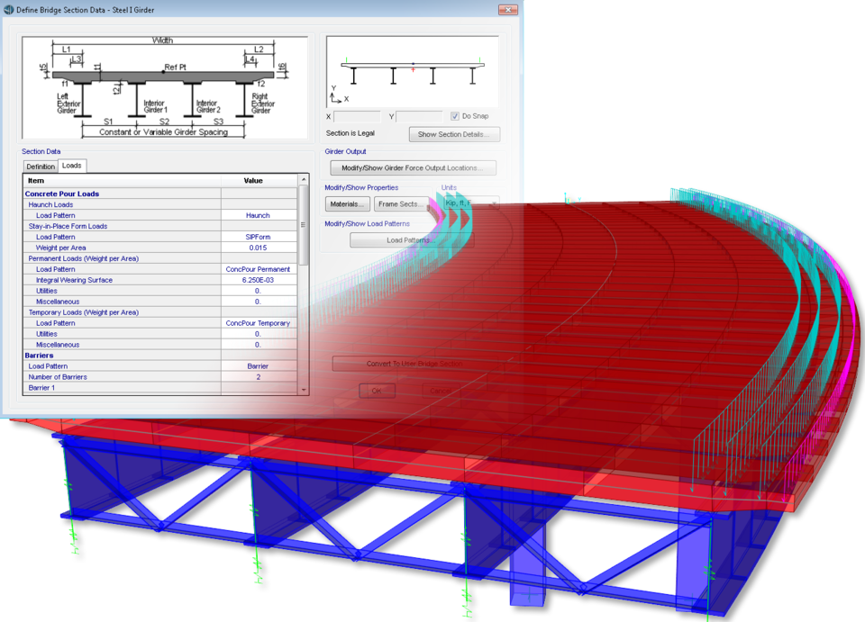 - 橋梁建模器現(xiàn)在可以為鋼混組合梁橋指定多對交叉支撐