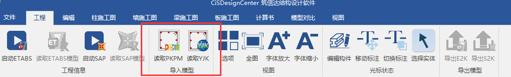 - 模型導(dǎo)入提供SAP2000中文版(*.s2k)、ETABS中文版(*.e2k)、PKPM(*.PDB)和YJK(*.YDB)四種文件的導(dǎo)入