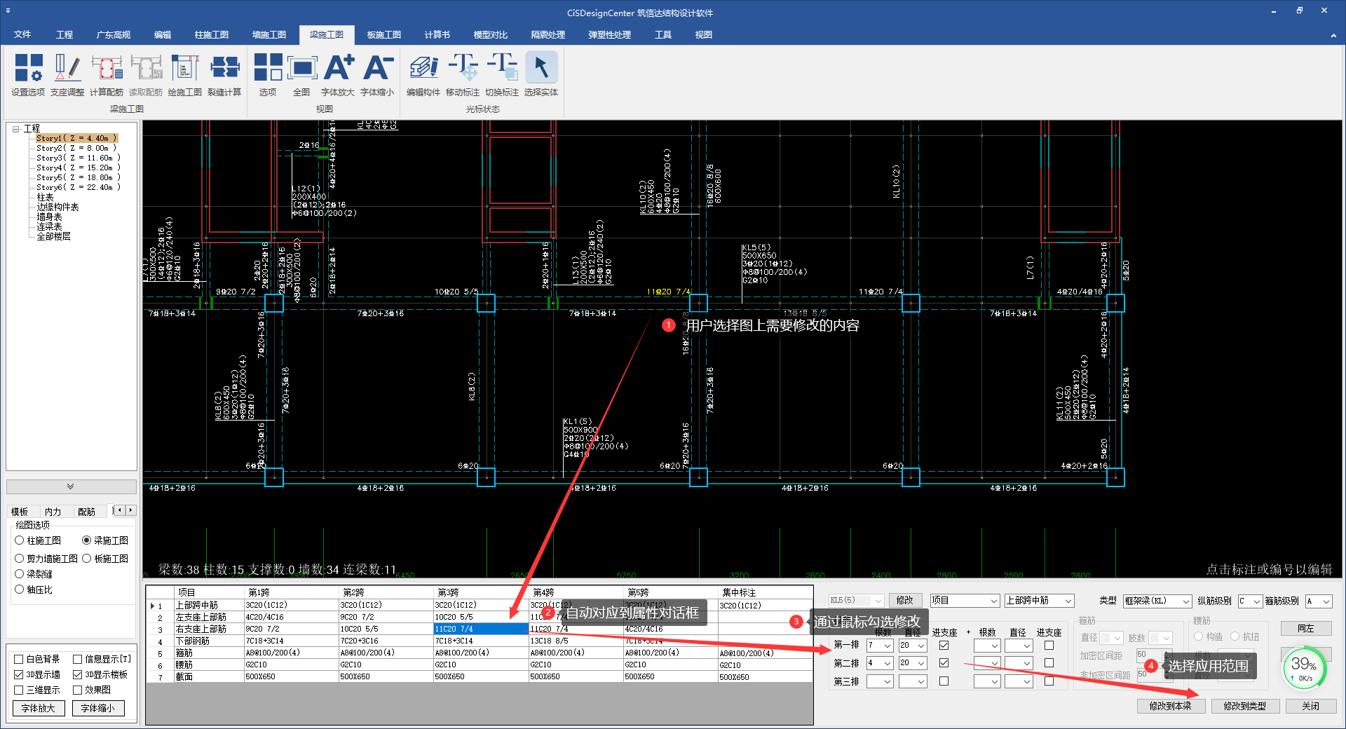 - 增加了梁施工圖繪制時選擇繪制本層或者繪制所有層的功能;