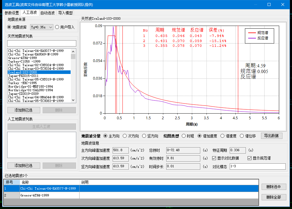 - 優(yōu)化了人工波的生成,使其具有足夠的有效持時,并且與反應(yīng)譜的匹配程度更高
