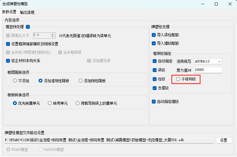 - 選擇彈塑性預(yù)處理模型時合并框架梁選項(xiàng)不能修改;