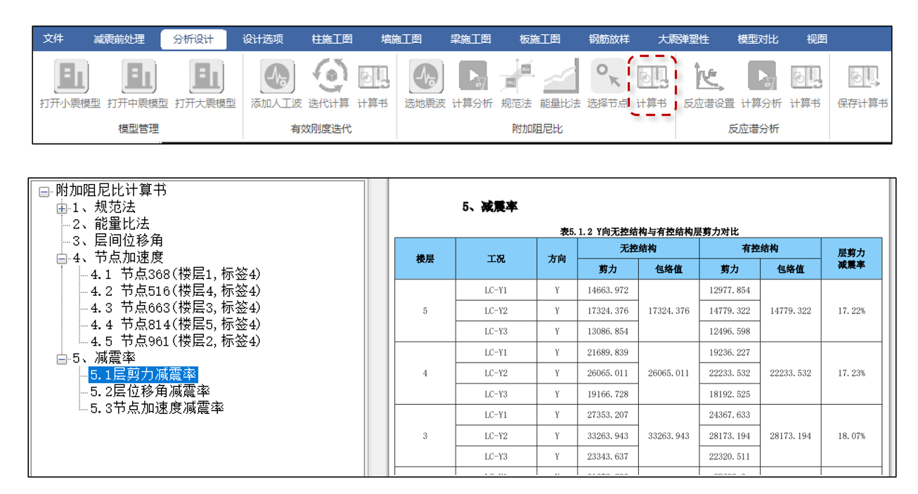 - 減震報告中增加減震率計(jì)算。