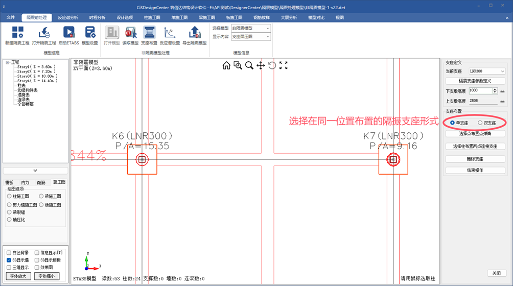 - 修復(fù)在DC中布置層間隔震支座時上支墩高度顯示有誤的問題,該問題不影響支座實(shí)際布置效果