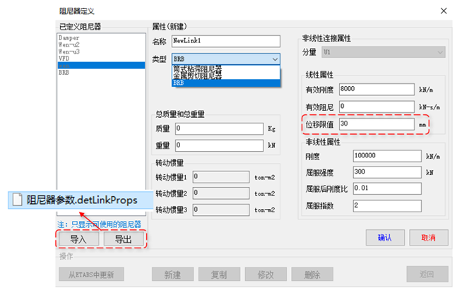 - 增加定義消能部件時,實(shí)時從ETABS中更新連接部件截面的功能。