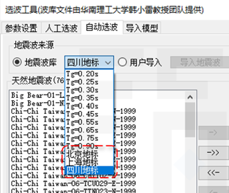 - 選波模塊中允許用戶建立自定義波庫,用戶導(dǎo)入的地震波庫將保存在軟件安裝目錄下,打開其它項(xiàng)目時可以繼續(xù)使用。