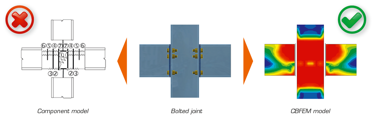 CBFEM法組合了兩種在全球范圍內(nèi)被工程師廣泛應(yīng)用和認可的鋼節(jié)點分析方法,即:有限單元法和組件法。其中: