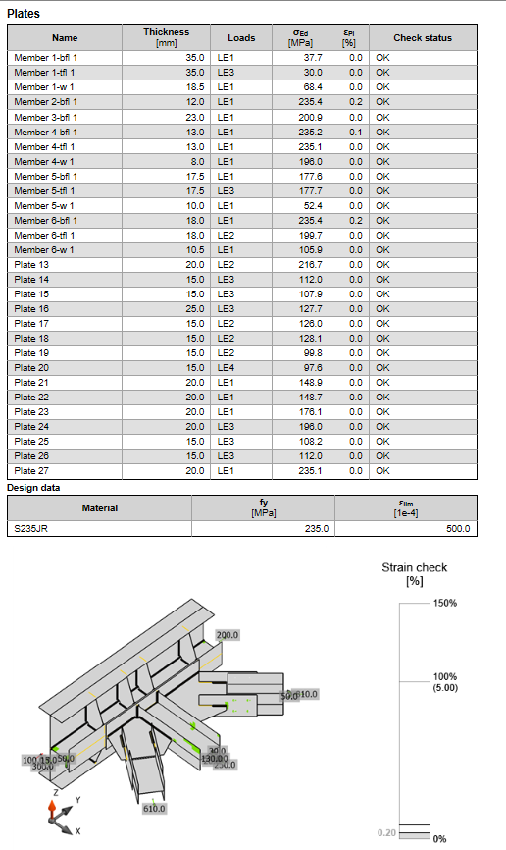基于歐標 EC3 的極限塑性應(yīng)變 5% 校核各個板件;