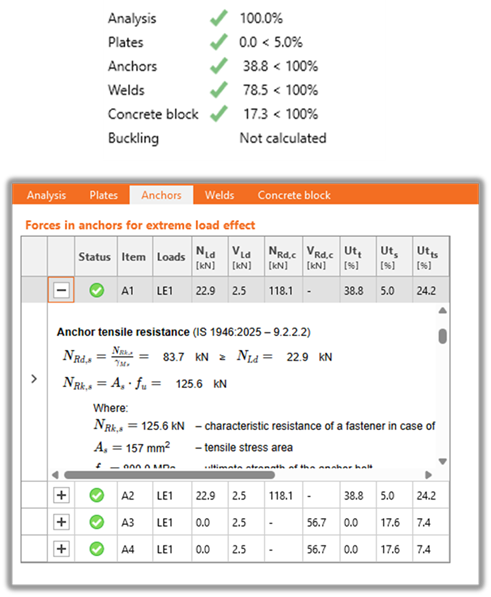 為了匹配Detail v25.1新增的錨栓類型,Connection v25.1同步新增預(yù)埋栓釘和預(yù)埋鋼筋,但目前僅支持基于歐標的承載力校核。