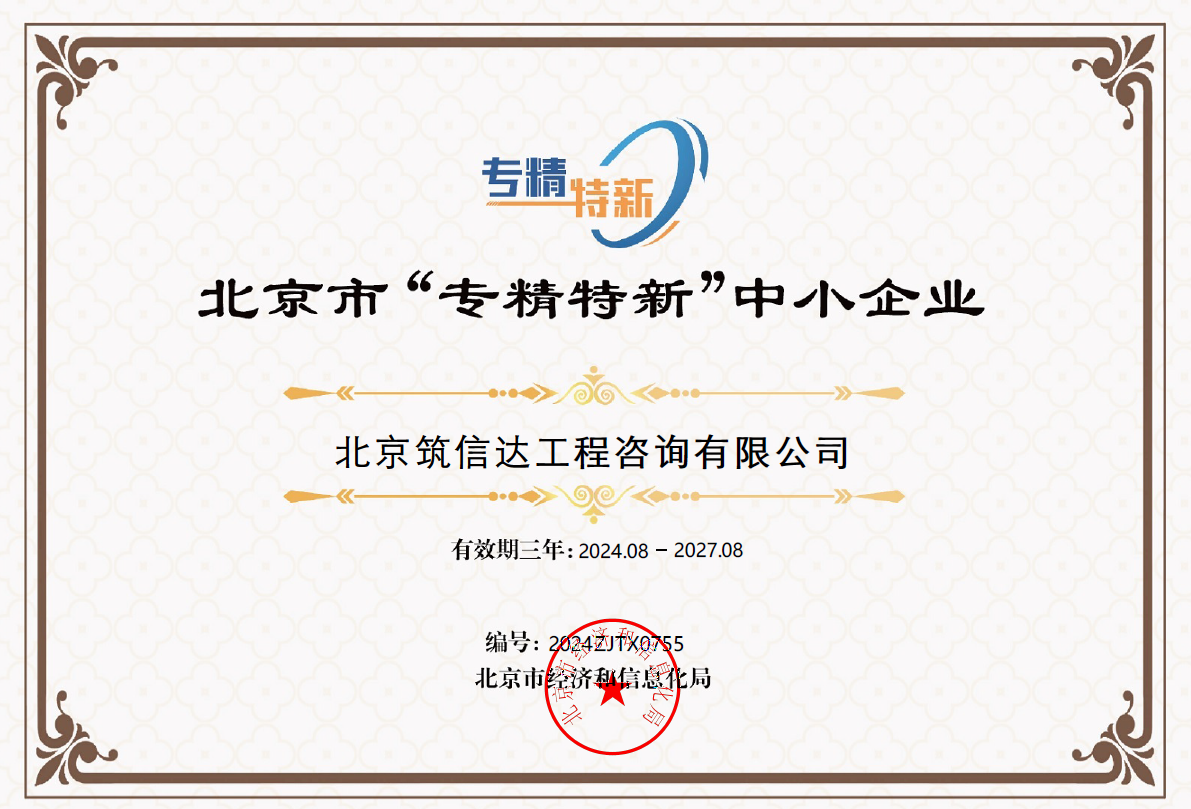 北京筑信達(dá)工程咨詢有限公司是ISO 9001認(rèn)證企業(yè)、國家高新技術(shù)企業(yè)、北京市“專精特新“中小企業(yè)。