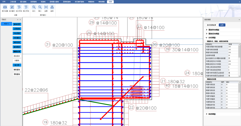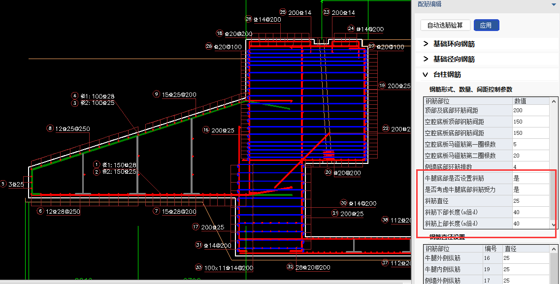 - 優(yōu)化了混塔基礎(chǔ)臺柱部分的配筋形式