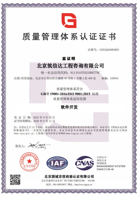 公司于2023年9月成功通過GB/T19001/ISO9001質(zhì)量管理體系認(rèn)證,標(biāo)志著我司將在“標(biāo)準(zhǔn)化、規(guī)范化、信息化”管理方面邁上新臺階,為進(jìn)一步提升企業(yè)管理水平、增強(qiáng)企業(yè)核心競爭力奠定堅(jiān)實(shí)基礎(chǔ)。