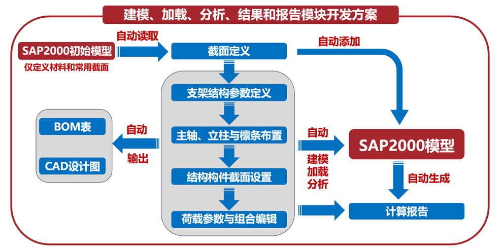 筑信達的SAP2000軟件因其強大的分析計算能力,在固定式支架、跟蹤支架、柔性支架得到了廣泛應用。更有合肥工業(yè)大學和仁卓智能聯(lián)合在SAP2000基礎上開發(fā)了跟蹤支架計算工具。實現(xiàn)了: