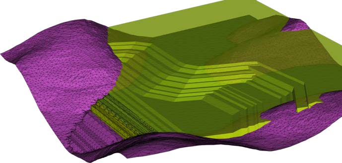 SVDESIGNER?軟件還有很多工具來進(jìn)行巖土工程設(shè)計,通過軟件工具箱消減回填來生成公路、路堤、土壩以及尾礦,或者生成更為復(fù)雜的結(jié)構(gòu)。軟件可以計算幾何模型的體積以及填入各種材料。