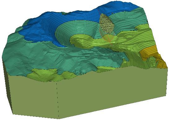 - 可對曲面進(jìn)行消減或開挖:通過消減曲面,可以在山的一側(cè)形成一條道路,露天礦的開采也可以通過這種形式來實現(xiàn)。