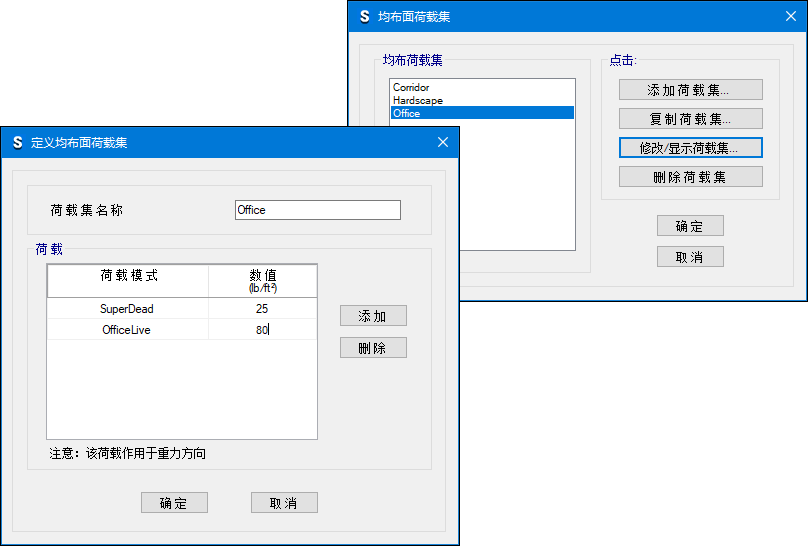 - 使用均布面荷載集功能,可以實(shí)現(xiàn)將多個(gè)荷載模式下的均布面荷載進(jìn)行一次性指定加載