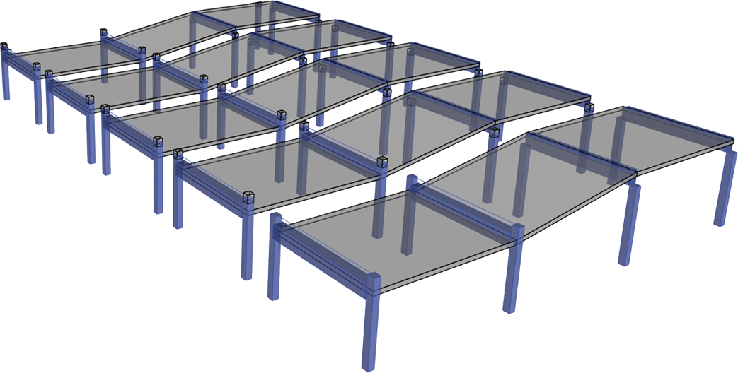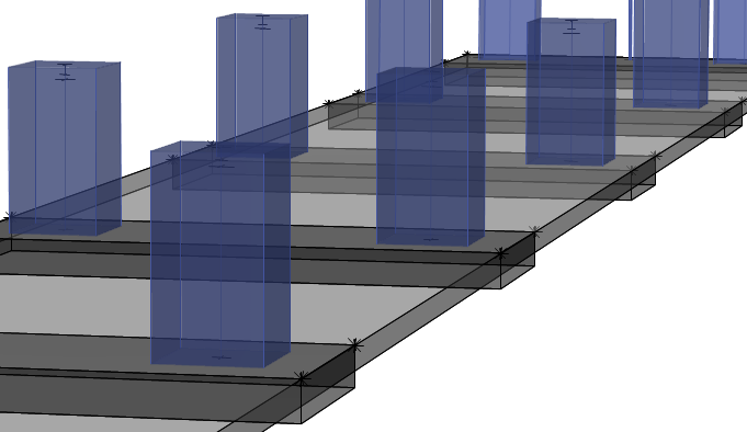 - 板塊(Slab panels)是一種新型的建模對(duì)象,它可以基于軸網(wǎng)或支承線自動(dòng)生成,也可以由用戶繪制。它們依附在樓板體系,借助板塊可以施加用于分析活荷載不利布置的活荷載分布樣式,也可用于提取中間板塊位移和土壓力的數(shù)據(jù)報(bào)告