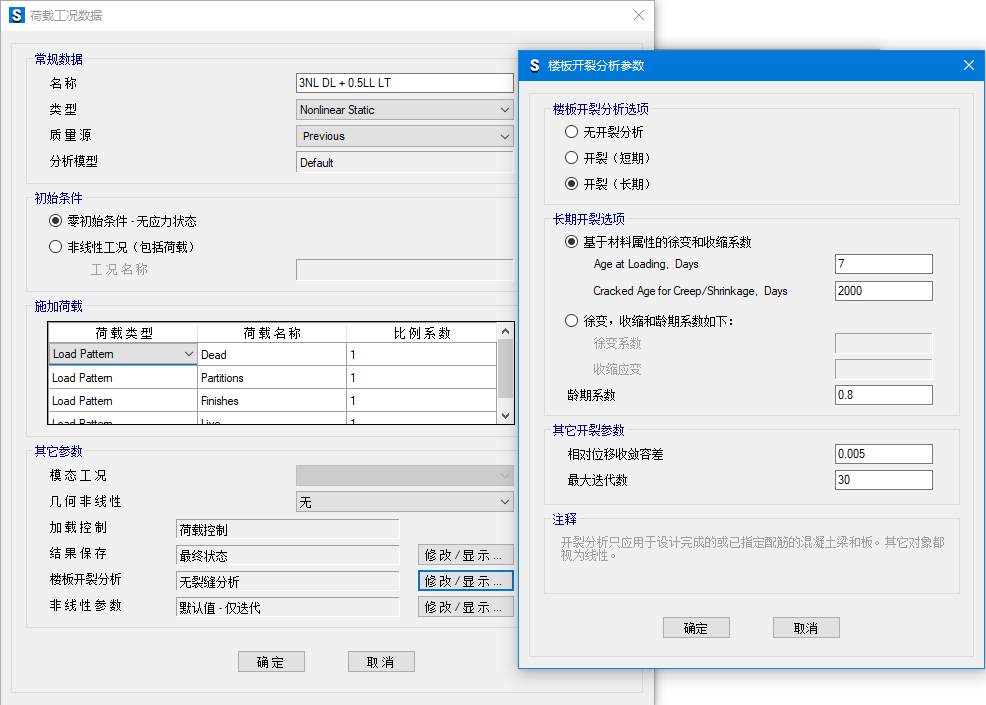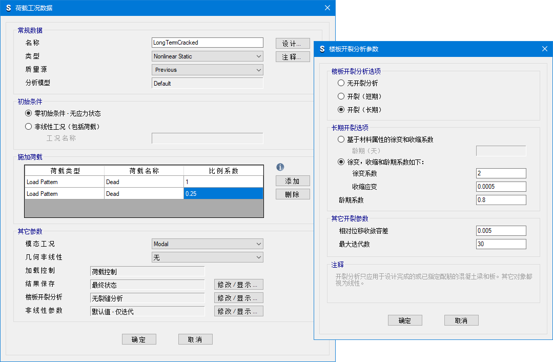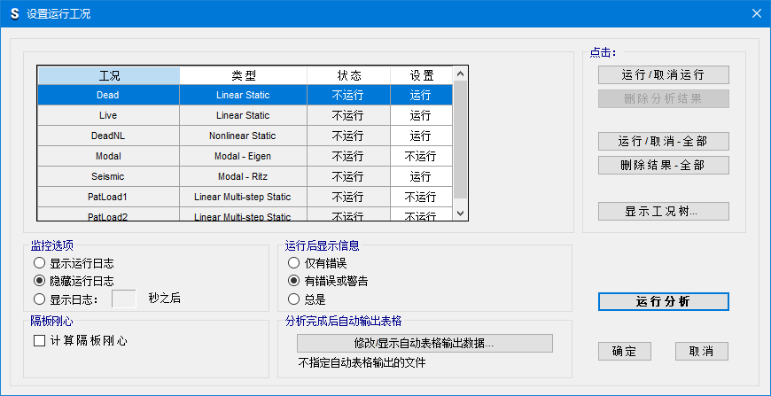 - 可以控制對(duì)哪些荷載工況進(jìn)行運(yùn)行分析,當(dāng)存在多種非線性荷載工況時(shí),可以節(jié)省時(shí)間