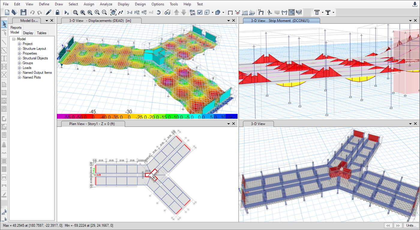 SAFE中文版提供統(tǒng)一的用戶界面來(lái)進(jìn)行建模、分析、設(shè)計(jì)和生成報(bào)告。新的模型瀏覽器可用于快速訪問(wèn)對(duì)象、屬性和表格。