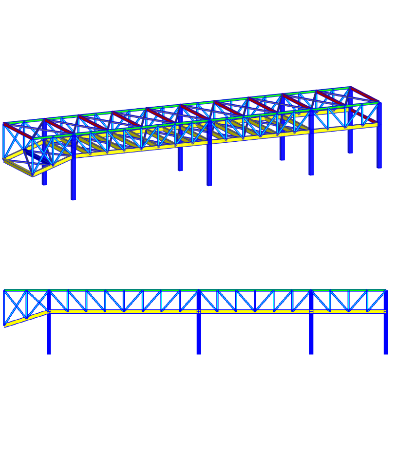 本教程旨在指導(dǎo)讀者在 SAP2000 中創(chuàng)建鋼結(jié)構(gòu)連廊的幾何模型并完成屬性指定、荷載施加、結(jié)構(gòu)分析與設(shè)計(jì)等工作。在具體操作過程中,讀者應(yīng)熟悉并掌握 SAP2000 的以下功能:帶屬性復(fù)制、修改框架局部軸、交互式數(shù)據(jù)庫編輯、框架對象的導(dǎo)荷選項(xiàng)、虛面的定義與加載、自動地震荷載模式以及鋼結(jié)構(gòu)設(shè)計(jì)的首選項(xiàng)和覆蓋項(xiàng)等。(SAP2000 模型版本:v23.3.0)